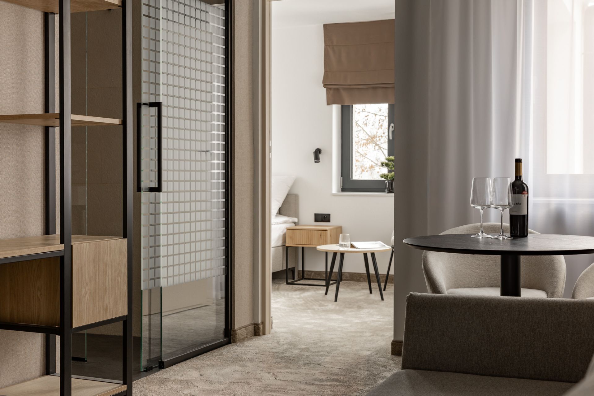 Przestronny pokój z łóżkiem małżeńskim i rozkładanym fotelem